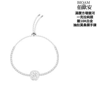 【BIOAM 佰歐安】一克拉莫桑鑽抽拉手鍊/滿鑽方環銀河純銀鍍白金(女王節/過爐款/莫桑鑽手鍊/不過敏)