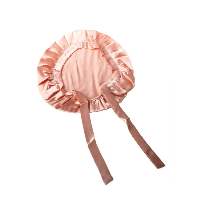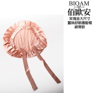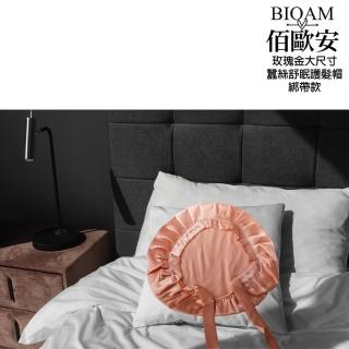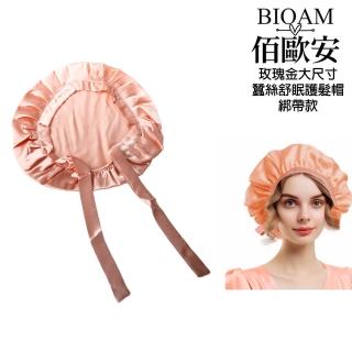 天然蠶絲大尺寸舒眠護髮帽綁帶款玫瑰金(蠶絲護髮帽/防靜電護髮睡眠/女王節)