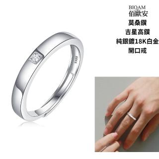 【BIOAM 佰歐安】桑鑽開口戒/排戒吉星高鑽戒莫純銀18K一入(女王節/不過敏/過爐款/莫桑鑽戒指)