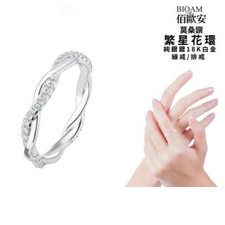 【BIOAM 佰歐安】莫桑鑽線戒/排戒繁星花環招美麗純銀18K一入(女王節/過爐款/莫桑鑽戒指/不過敏)