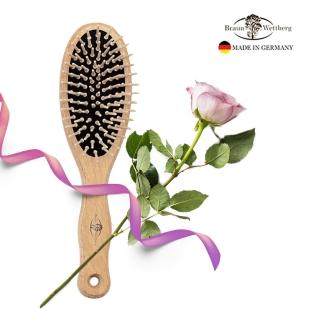 + Free Shipping【BRAUN WETTBURG 珀薇】德國製 好好握圓型大木齒氣墊好按摩梳(氣墊好按摩梳/梳頭按摩美容/女王節),結合德國製作、木齒梳針、氣墊回彈支撐,帶來舒適順手的日常梳理與造型使用感受。